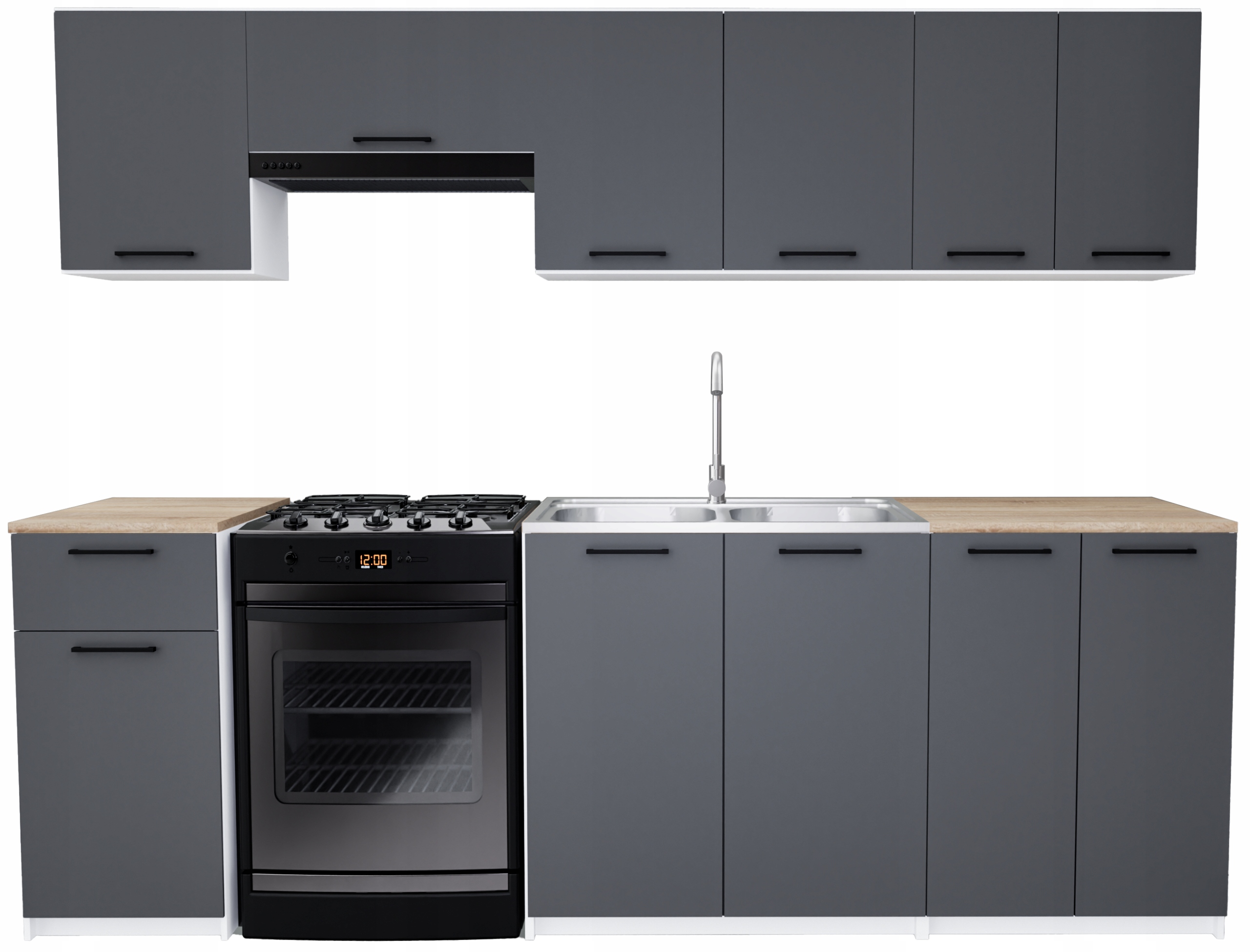 Zestaw mebli kuchennych Toronto TANIE Antracyt + Blat